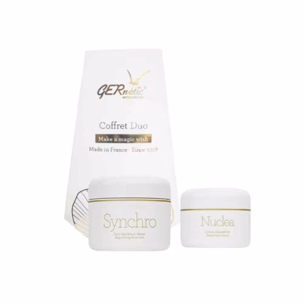 Descubre la combinación ideal para tratar las imperfecciones de las pieles mixtas y grasas. Este pack reúne la crema regeneradora y nutritiva Synchro con la crema reparadora Nuclea, ofreciendo una solución completa para devolver a tu piel una textura impecable y mantenerla en condiciones óptimas.